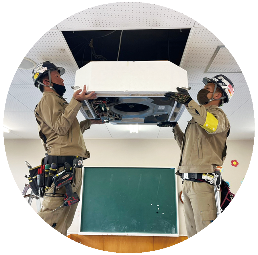 住宅や施設を対象に、エアコンや空調機器の取り付け、交換、メンテナンスを行っています。設置や配管、運転確認まで一貫して対応し、快適な空間づくりをサポートします。現場は2~3名のチーム制で、住宅から商業施設まで幅広い施工に対応しています。